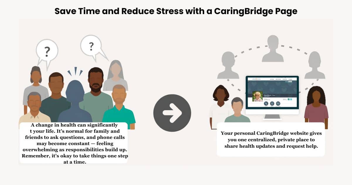 The phone calls never seem to stop. Your mom wants to know how the doctor visit went. Your sister needs updates for the rest of the family. Your best friend is worried and checks in daily. Instead of repeating the same information over and over, CaringBridge lets you write one update that reaches everyone at once.